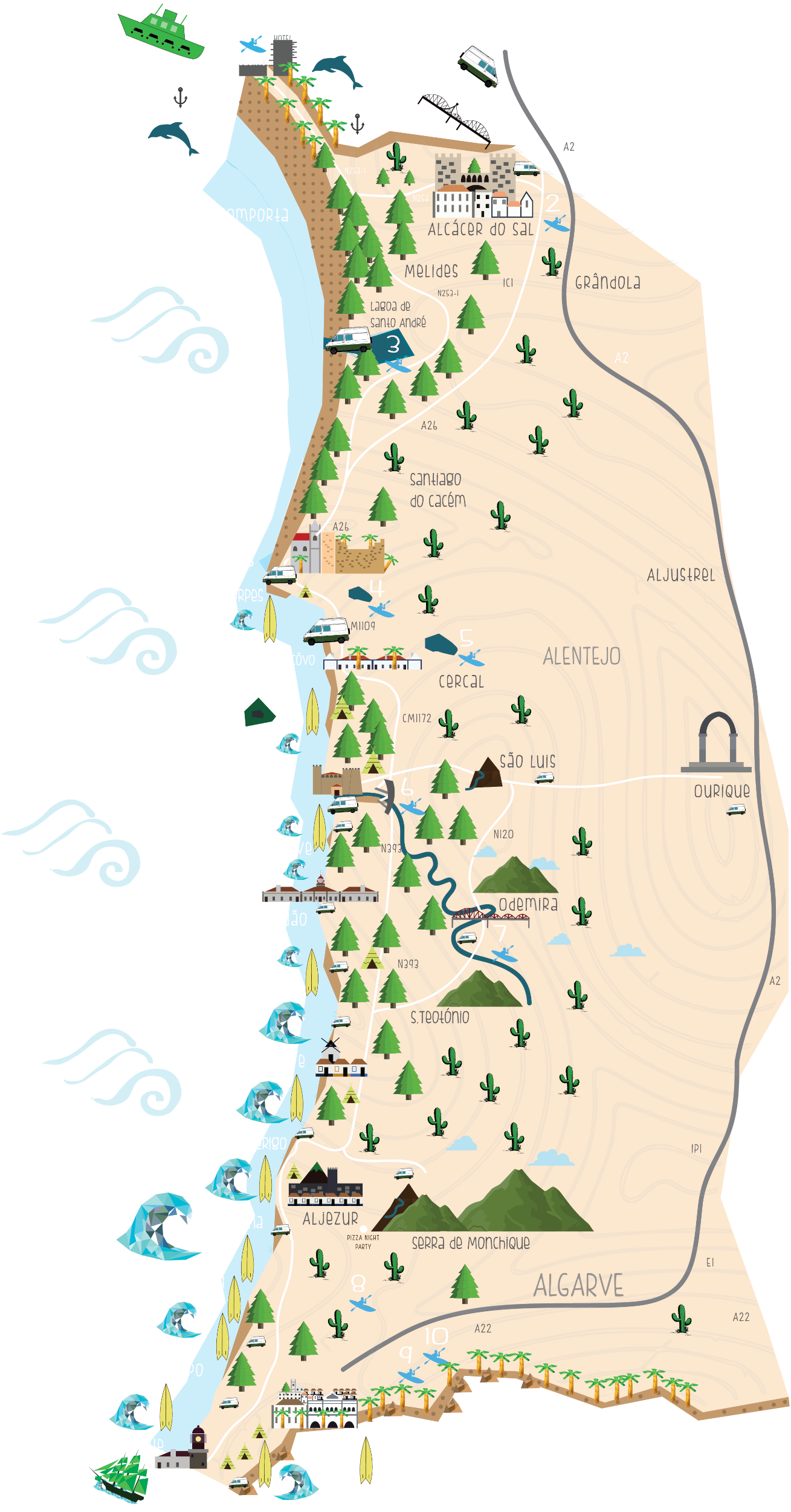 The ALLWAYS PIRATES gifts you a road map with the best spots and the possibility to explore nature through our partners. We give you the map, but you are free to do as you please. You can catch the ferry Setúbal-Tróia or travel though interior roads. If you prefer, you can go and stay in São Luís, a natural paradise. Take notice of the length of your stay.